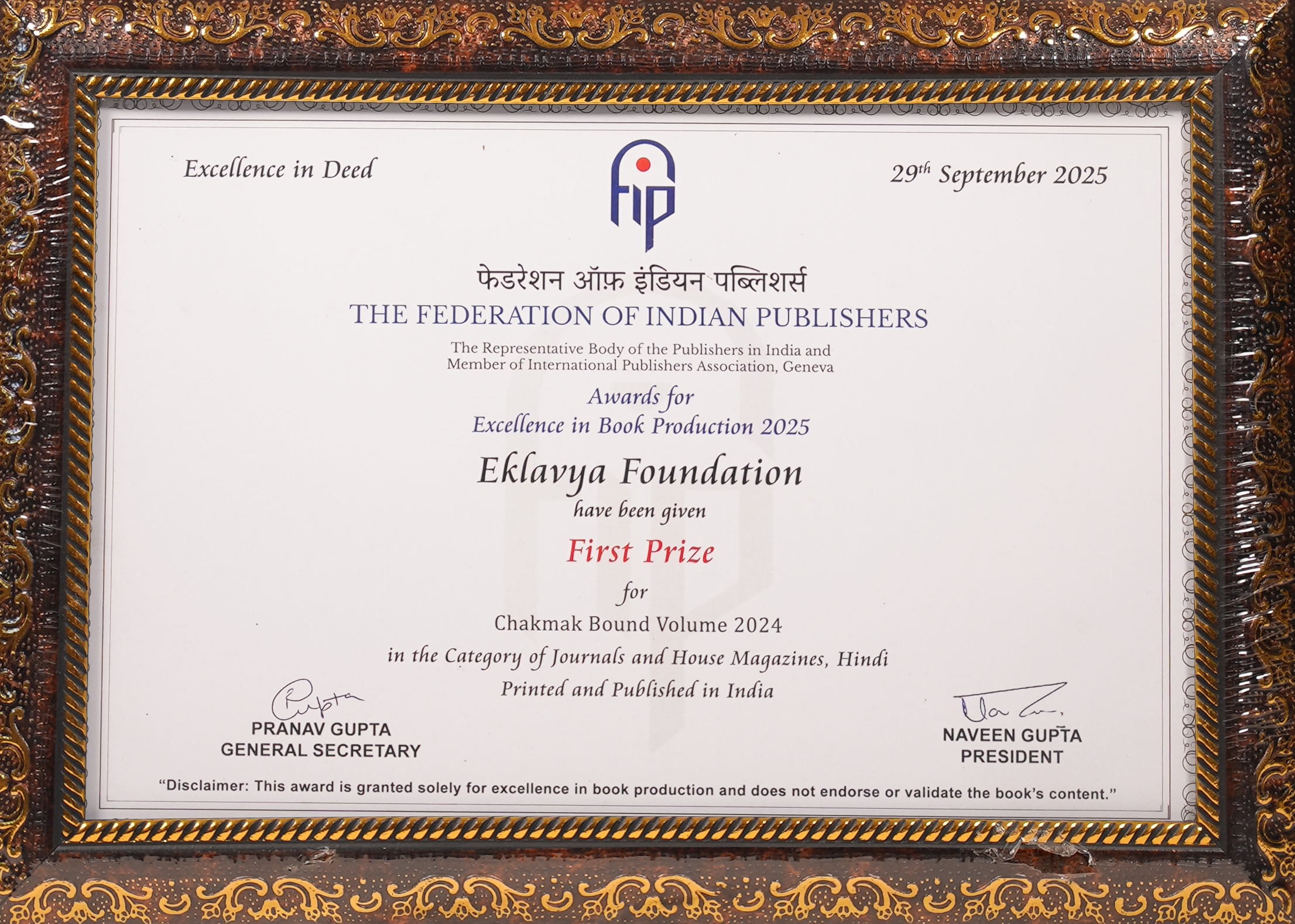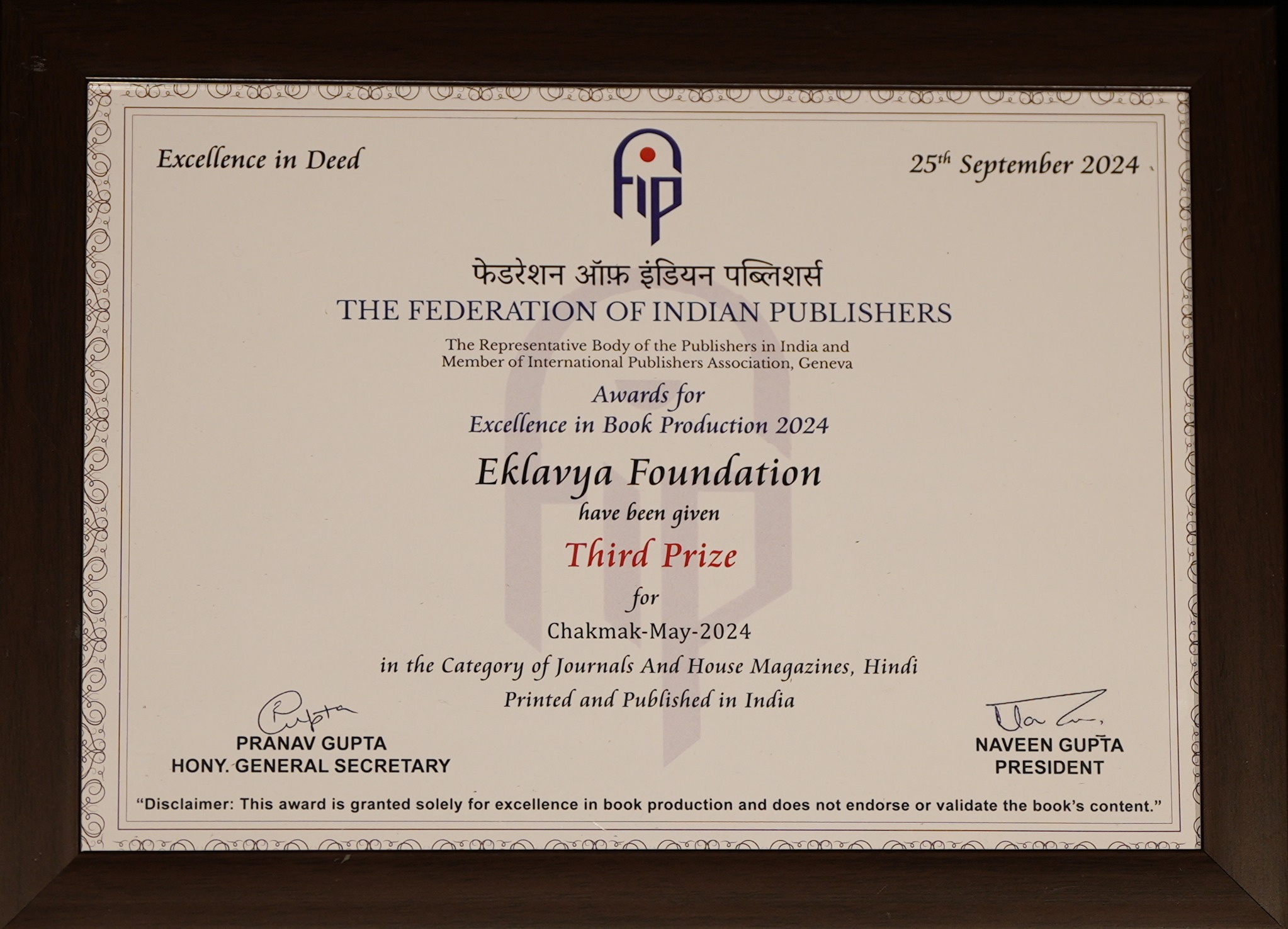 | 🏆 | Journals and House Magazines- Hindi – Chakmak Bound Volume 2024 | First Prize | View Award |