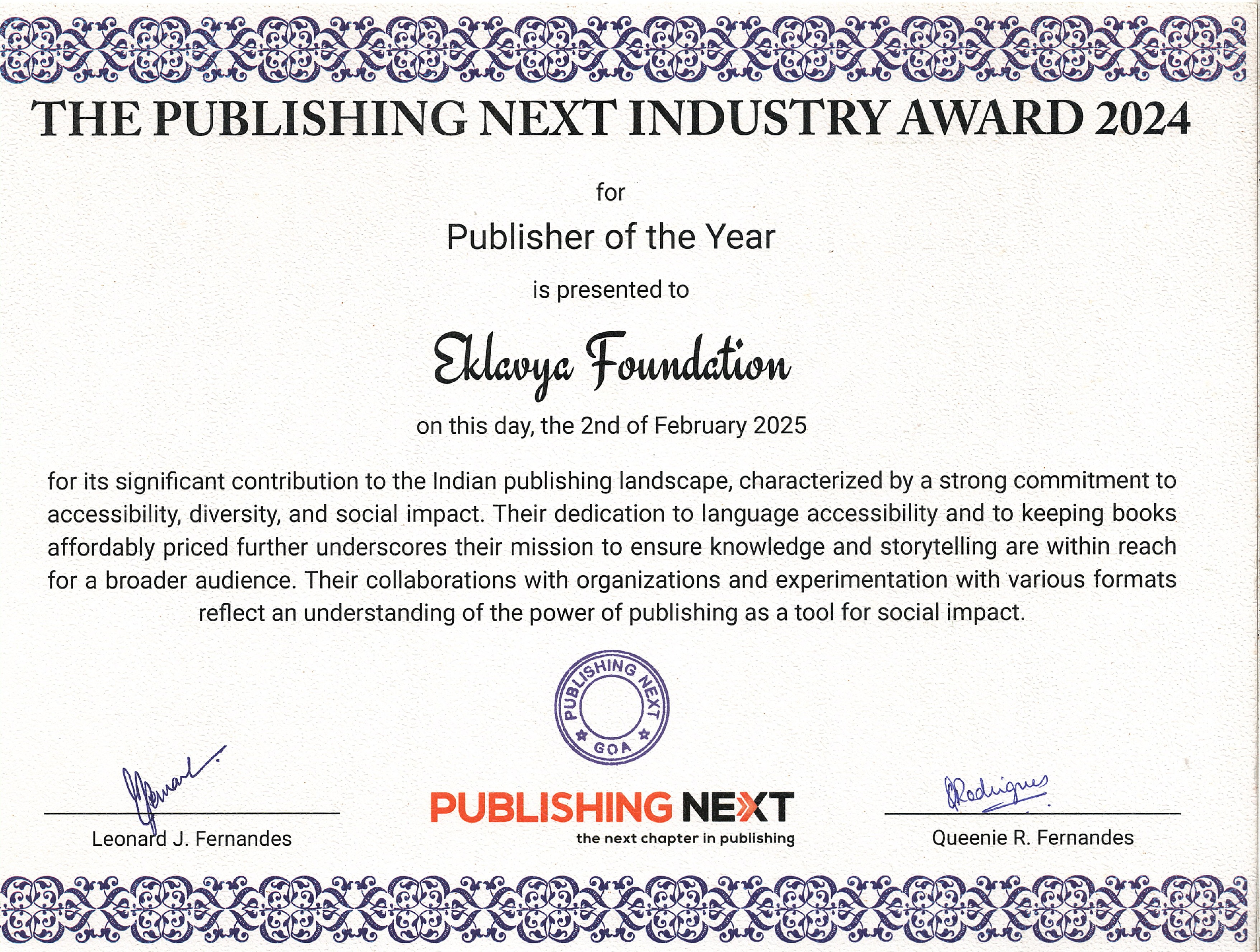 | 🏆 | Publisher of the Year – Eklavya Foundation | View Award | |