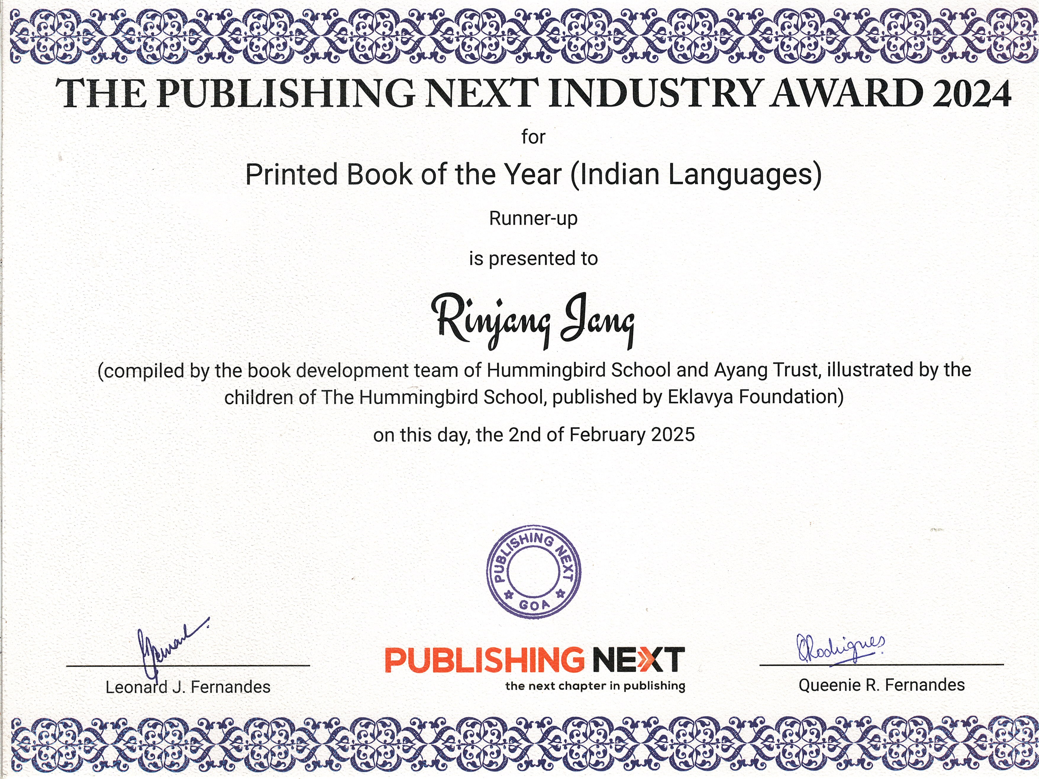 | 📘 | Printed Book of the Year (Indian Languages) – Rinjang Jang | Runner-Up | View Award |