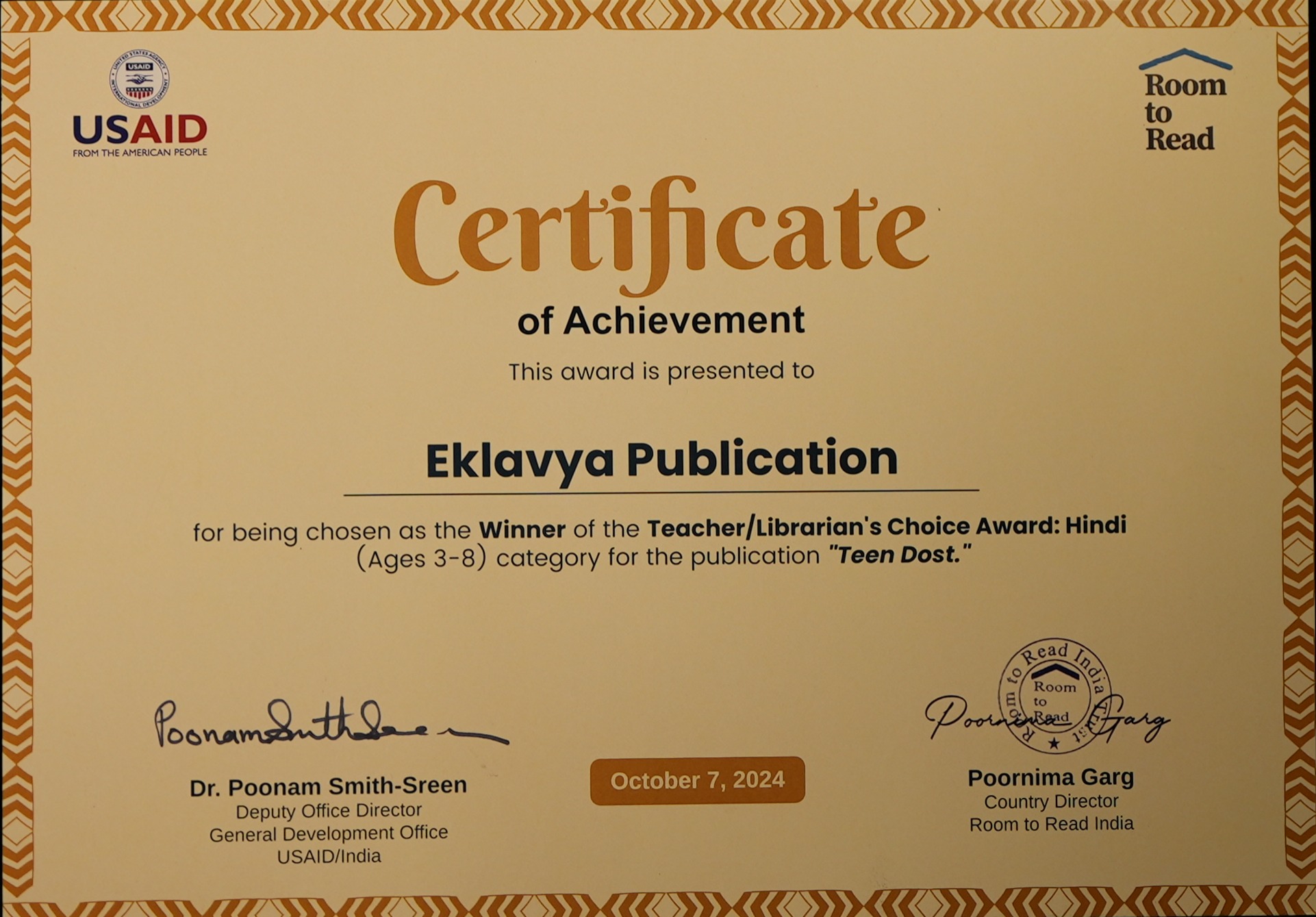 | 🏆 | Picture Book Creator Award (Young Publisher 8-12) – Teen Dost | Winner | View Award |