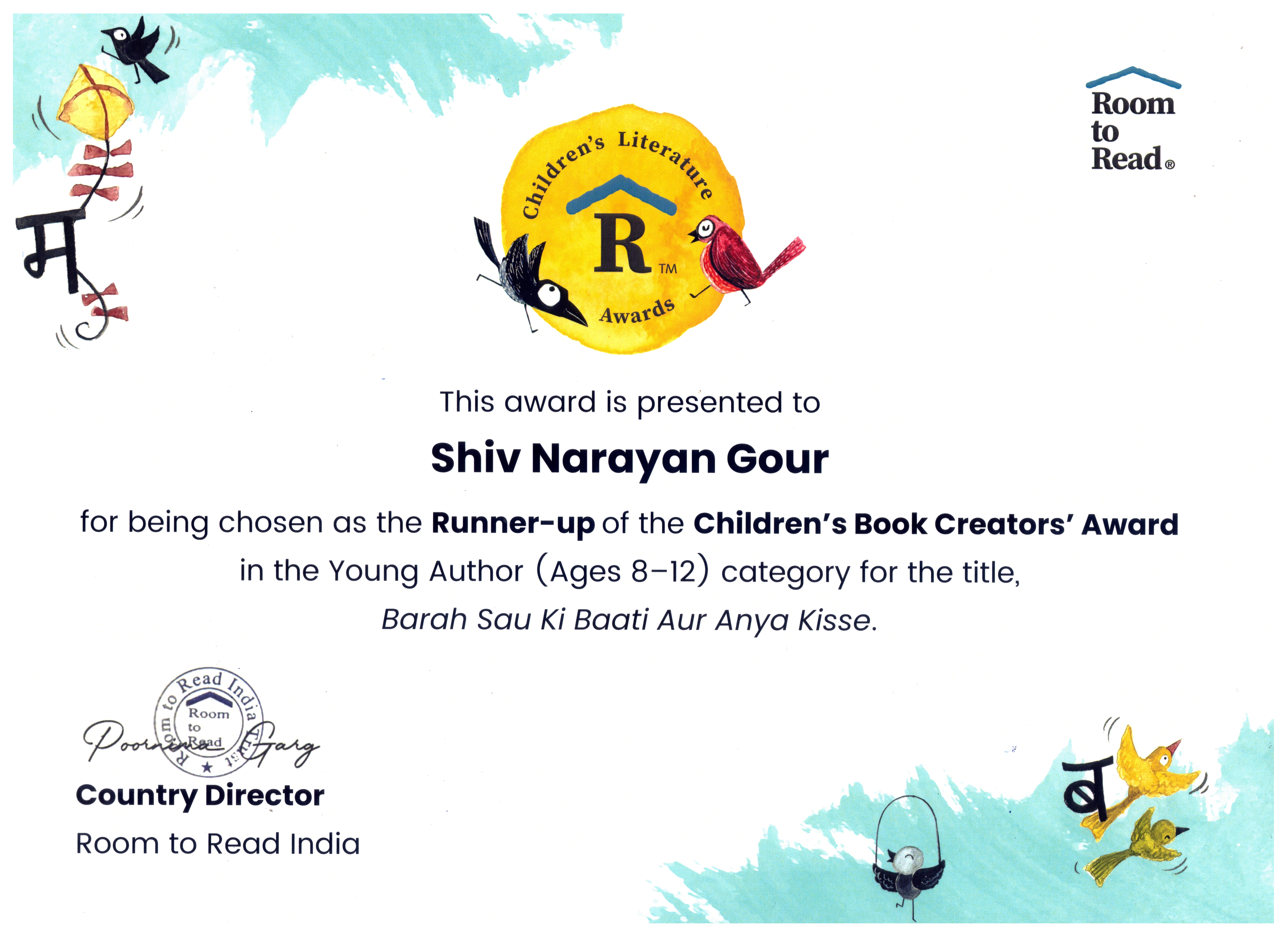 | 📘 | Children’s Book Creators’ Award (Young Author) Ages 8-12–Barah Sau Ki Baati Aur Anya Kisse–Shiv Narayan Gour | Runner-Up | View Award |