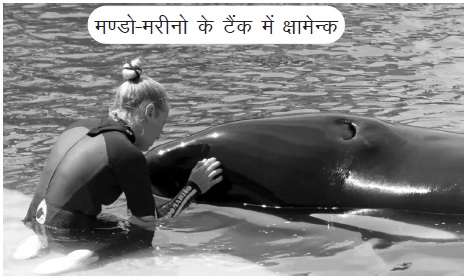 टैंक का आकार क्षामेन्क के शरीर के हिसाब से बहुत छोटा है - एक निर्जीव अंडाकार कटघरा, जिसमें धूप से चमकता कॉन्क्रीट और क्लोरीनयुक्त पानी है। घंटों तक क्षामेन्क बिल्कुल निष्क्रिय तैरता रहता है। वहां लहरें नहीं, वहां जीवन नहीं, वहां सिर्फ प्रतीक्षा है। उसकी कहानी आज सिर्फ एक जीव की नहीं, बल्कि उन अनगिनत समुद्री प्रजातियों की कहानी है जिन्हें हमारी तमाशा देखने की भूख ने समुद्र से काट दिया है।