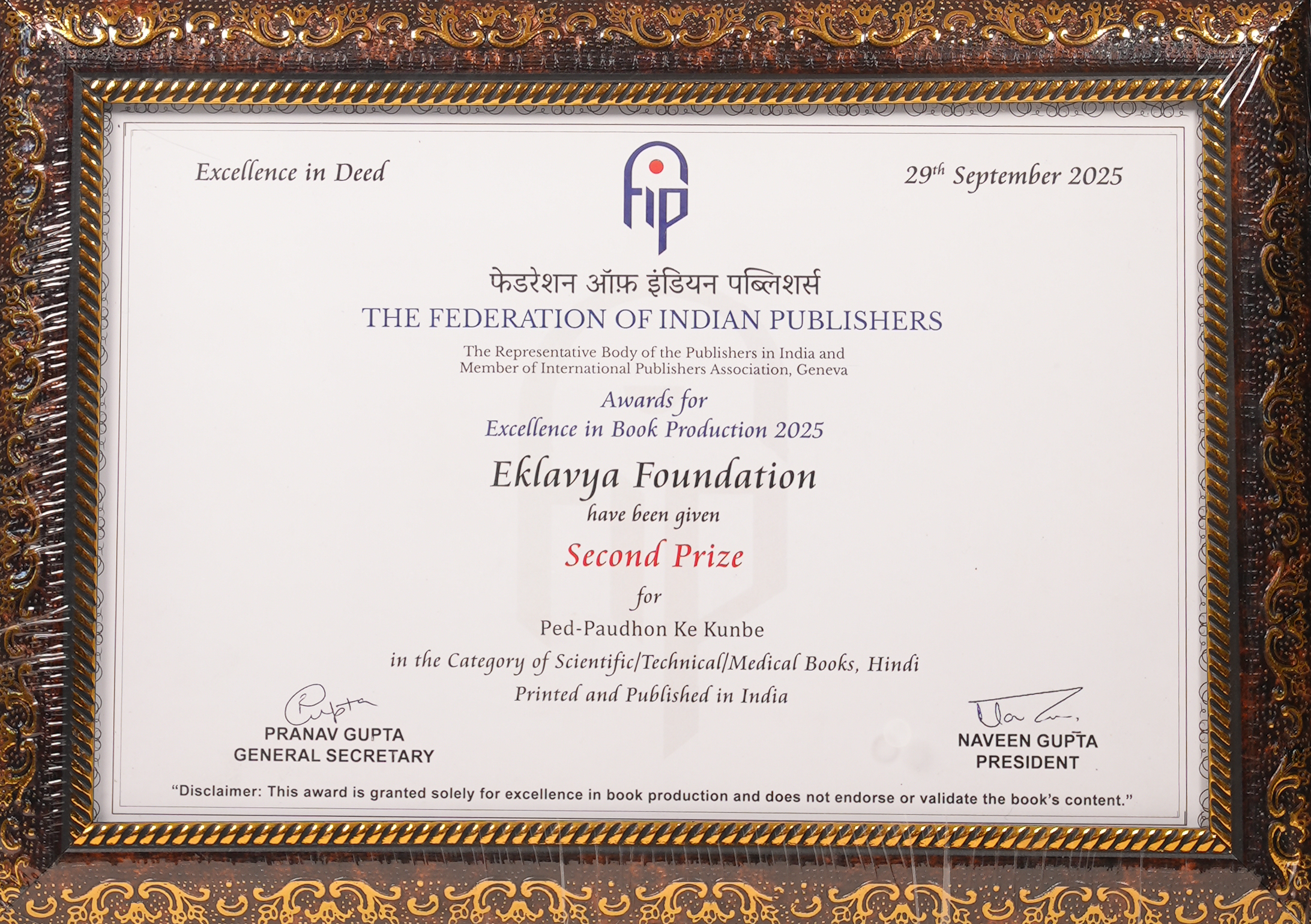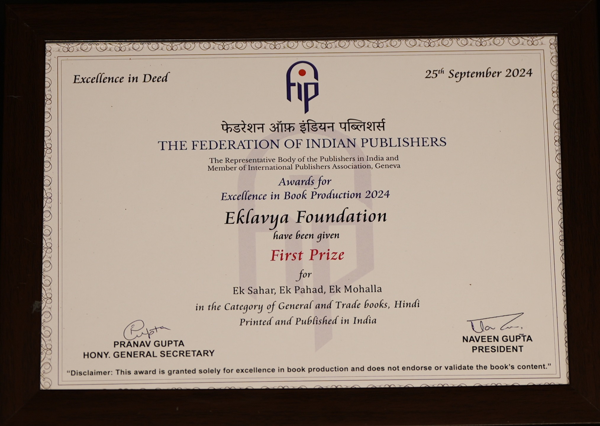 | 🏆 | General and Trade books (Hindi) – Ek Shahar Ek Pahad Ek Mohalla | First Prize | View Award |