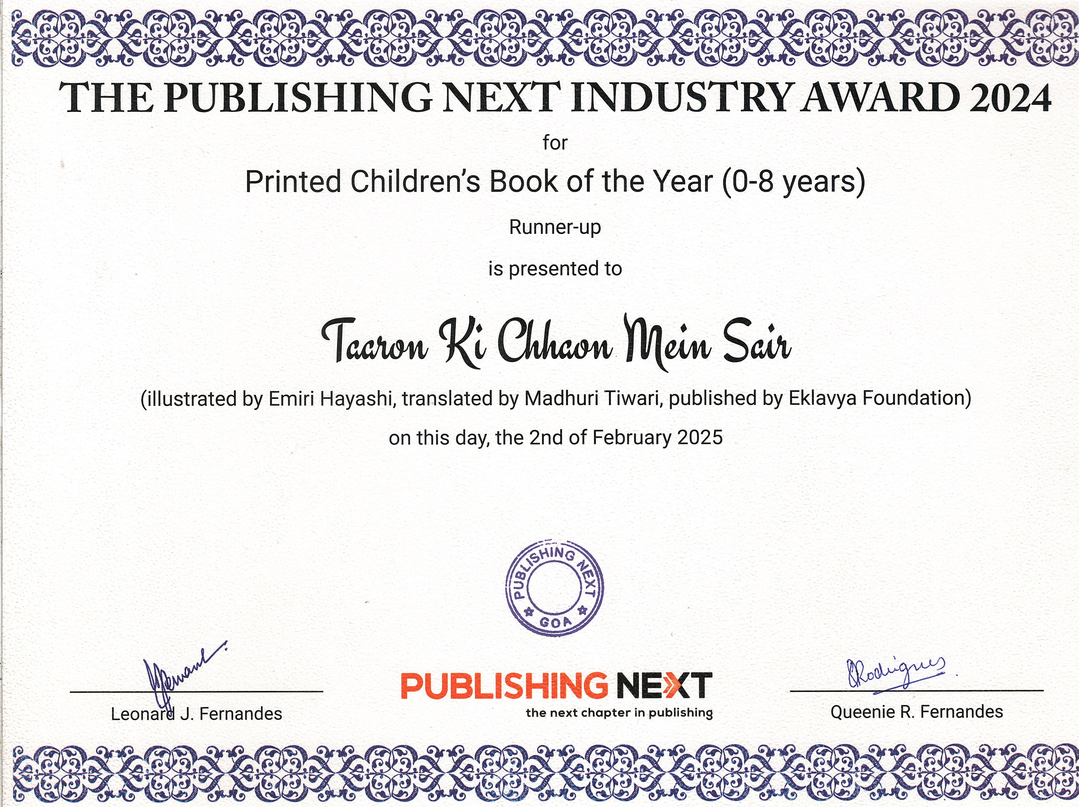 | 📘 | Printed Children's Book of the Year (Ages 0–8) – Taron Ki Chaon Mein Sair | Runner-Up | View Award |