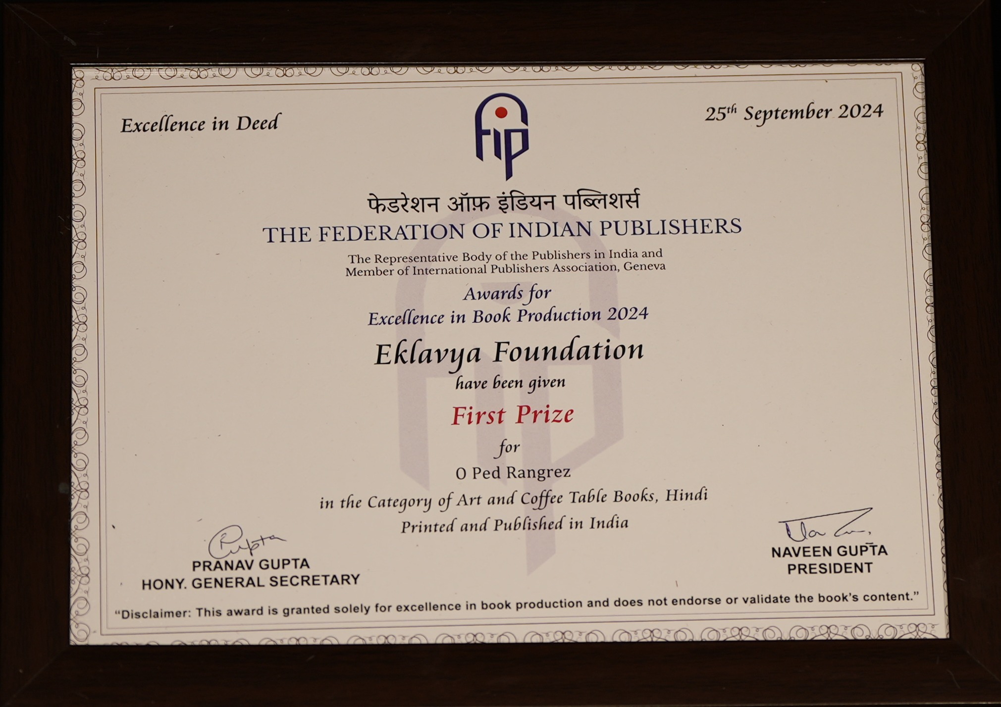 | 🏆 | Art and Coffee table books (Hindi) – O Ped Rangrez | First Prize | View Award |