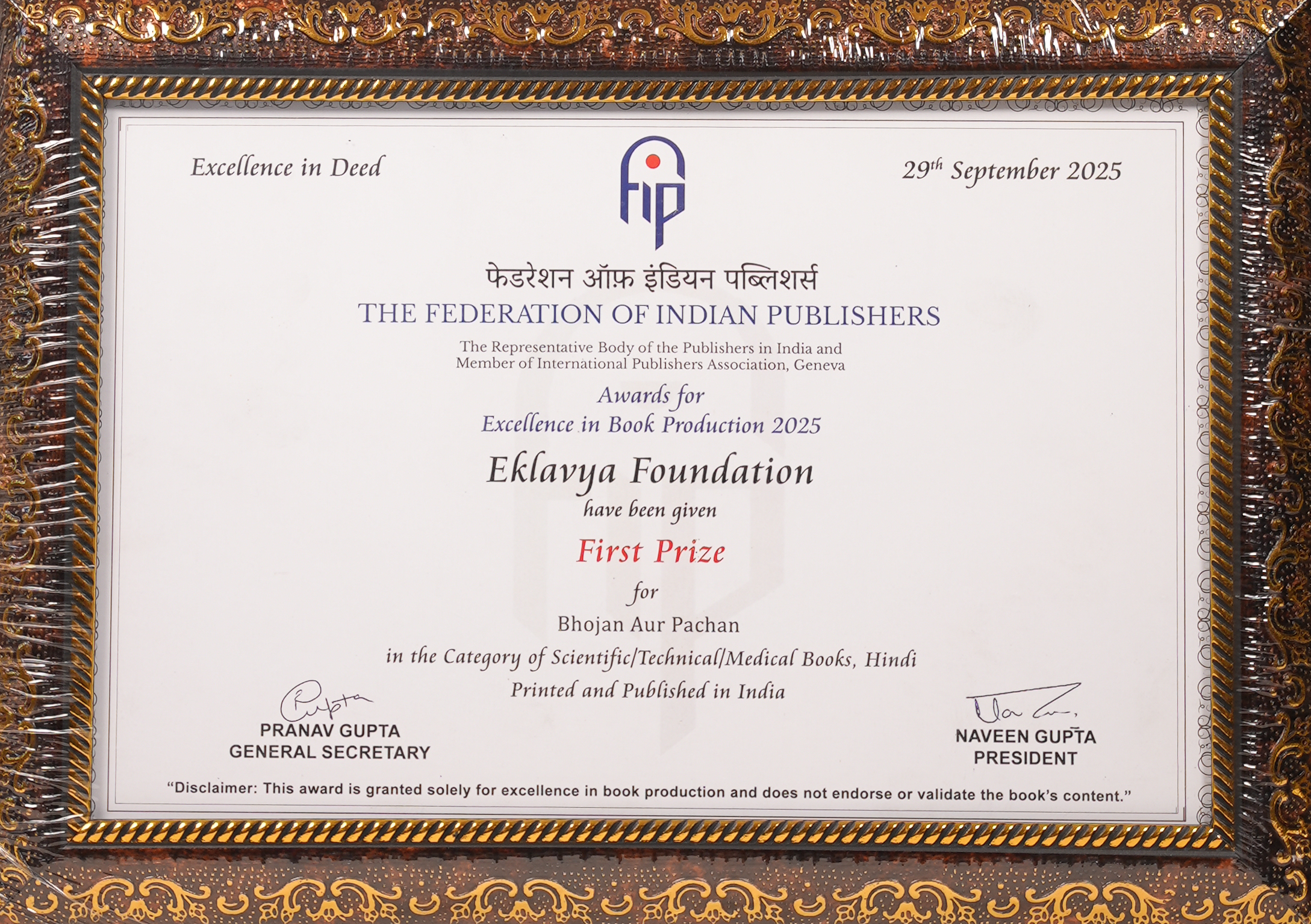 | 🏆 | Reference Books- Hindi – Bhojan Aur Pachan | First Prize | View Award |